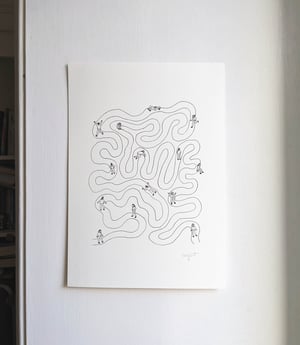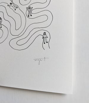 Print is sent out nestled inside a biodegradable sleeve with sturdy greyboard backing, in a recycled cardboard envelope.